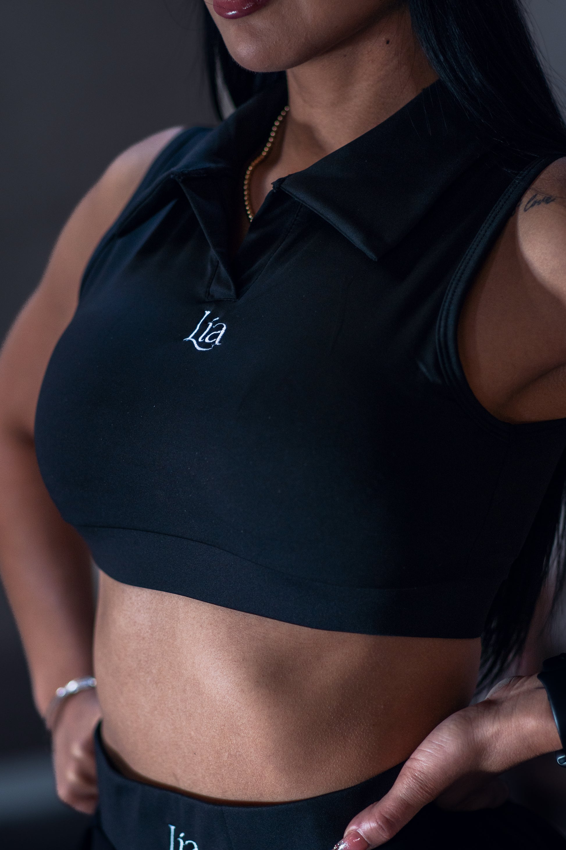 Top tela durazno con copas